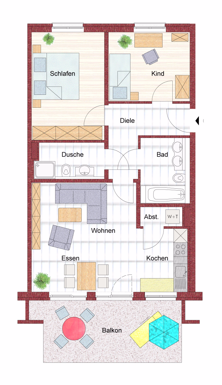 Diese gehoben ausgestattete 3-Zimmer Wohnung überzeugt durch ihren optimalen Grundriss, den hellen und freundlichen Wohnraum, einem Traumbad mit Designerfliesen und Badmöbeln, sowie ihrem sonnigen Balkon, der den Lebensraum in dieser Wohlfühlwohnung abrundet.
